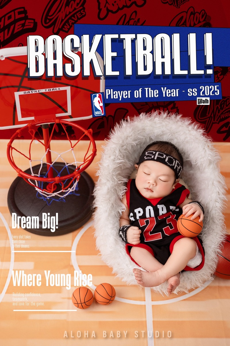 Đôi tay còn bé xíu, nhưng đã ôm trọn quả bóng như ôm lấy cả một giấc mơ. Đôi mắt còn say ngủ, nhưng biết đâu trong giấc mơ ấy, con đang chạy dọc sân đấu, tung cú ném đầu đời vào chiếc rổ lấp lánh dưới ánh đèn vàng. Trên đôi má bầu bĩnh là sự hồn nhiên, nhưng trong dáng nằm khép tay ấy, ba mẹ đã thấy một tinh thần thi đấu đang chớm nở.