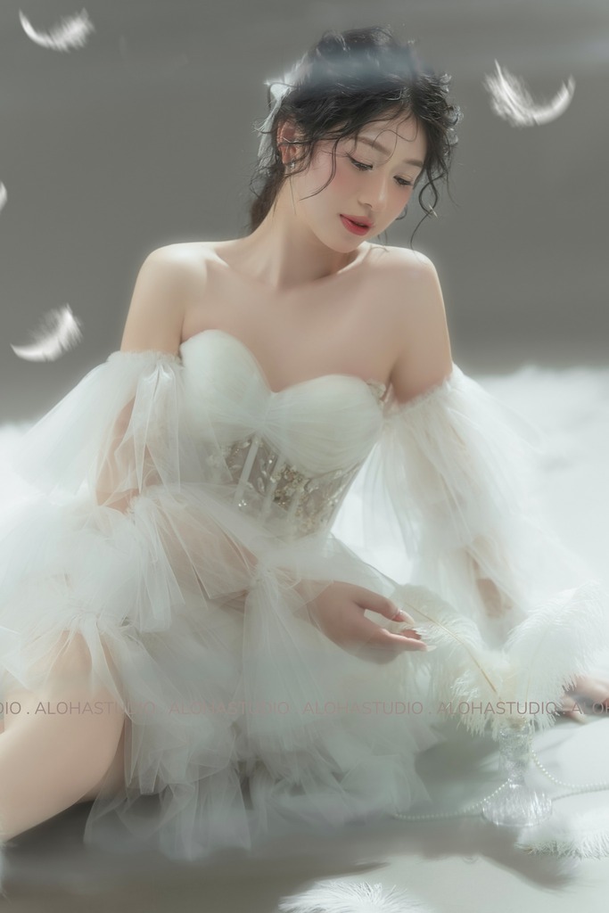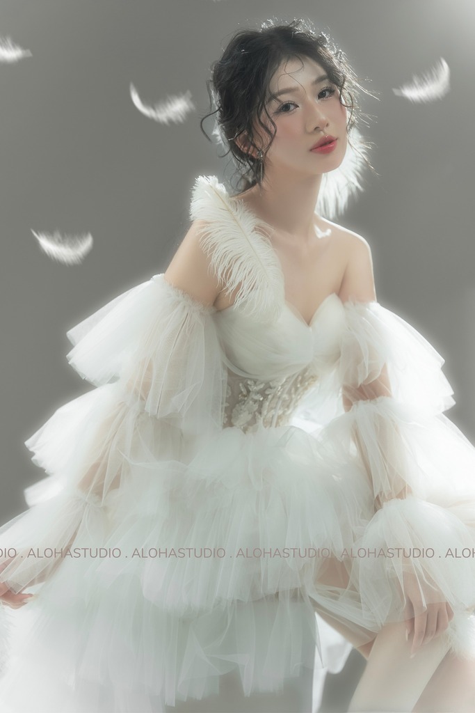 Khổng Tước – concept với tone trắng chủ đạo, tôn lên nét đẹp dịu dàng và thuần khiết đặc trưng của Aloha, chắc chắn sẽ là một lựa chọn không tồi. Với sự kết hợp hài hòa giữa ánh sáng, trang phục và phong cách trang điểm, concept chụp ảnh nghệ thuật Khổng Tước mang lại những khung hình nghệ thuật đầy cảm xúc và cuốn hút.